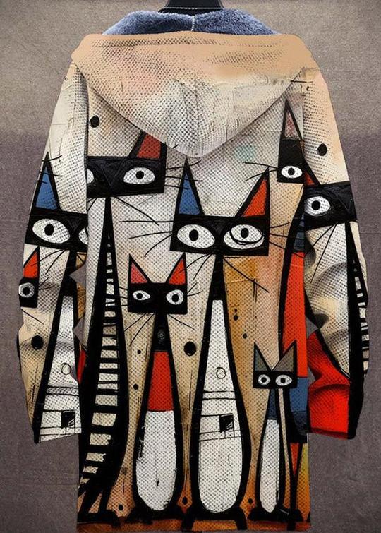 Mit ihrem auffälligen, abstrakten Katzenmotiv hebt sich dieser Hoodie von herkömmlichen Designs ab und ist die perfekte Wahl für kreative Persönlichkeiten, die ihren individuellen Stil zeigen möchten. Der weiche, gefütterte Hoodie sorgt für angenehme Wärme an kalten Tagen und bietet zugleich einen lässigen, modernen Look.